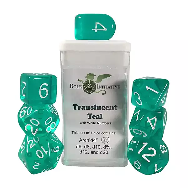 Dice - Polyhedral - Translucent Teal w/White, Arch'd4 (7)